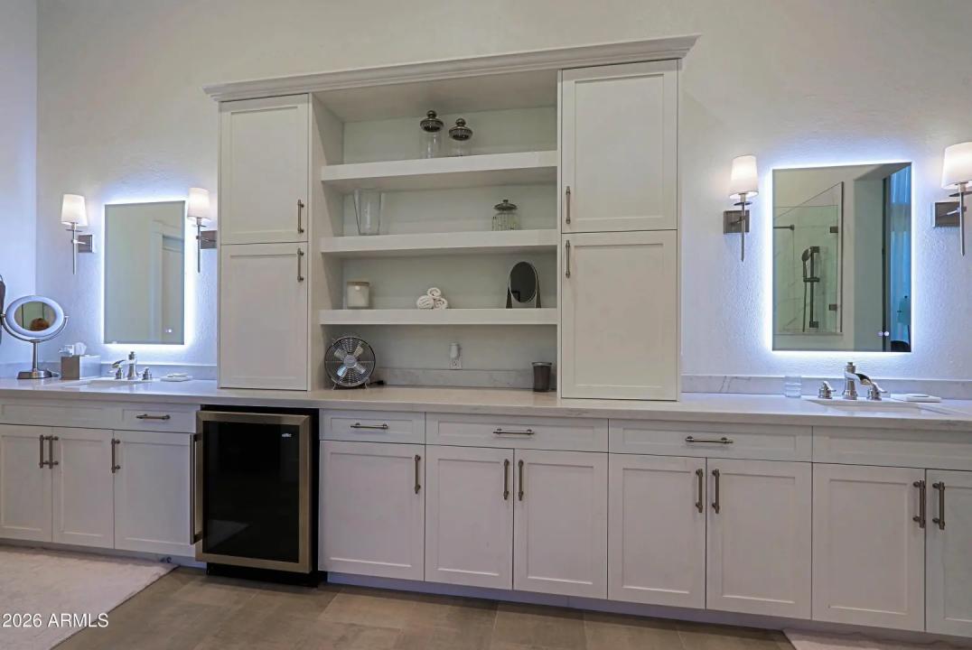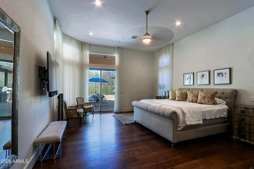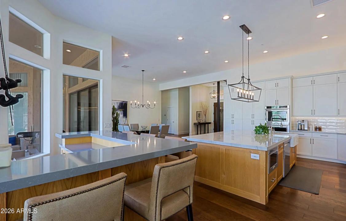 Don't miss this opportunity to own a completely remodeled home in a highly sought after Troon neighborhood. The home was elegantly re-designed creating a light and bright open floor plan using high end contemporary finishes including automated blinds. Upon entering, there is a chic glassed-in wine room or office w/ built-in cabinetry and a large formal dining room with sliding doors that open to a spacious covered patio. An entertaining bar that features beautiful mountain views is the hub of the main living area. The bar leads to a state of the art kitchen with built-in subzero refrigerator, gas cooktop, double wall ovens and a gorgeous island w/breakfast bar seating. The family room boasts a modern fireplace w/ cabinetry & shelving on either side and windows above that showcase