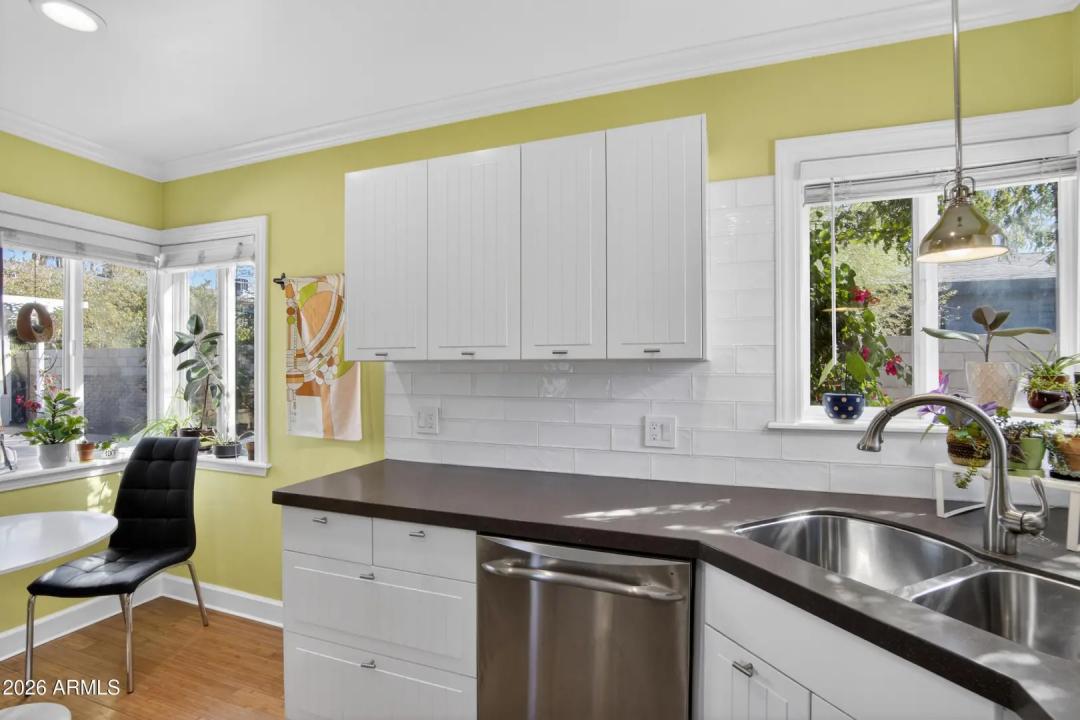 Nestled in the heart of Coronado, this beautifully restored historic home invites you to slow down, settle in, and enjoy the character of one of Phoenix's most beloved neighborhoods. From the moment you step inside, you're greeted by the warmth of original coffered ceilings, rich bamboo flooring, and the cozy charm of a wood-burning fireplace that makes the living space feel both timeless and welcoming.