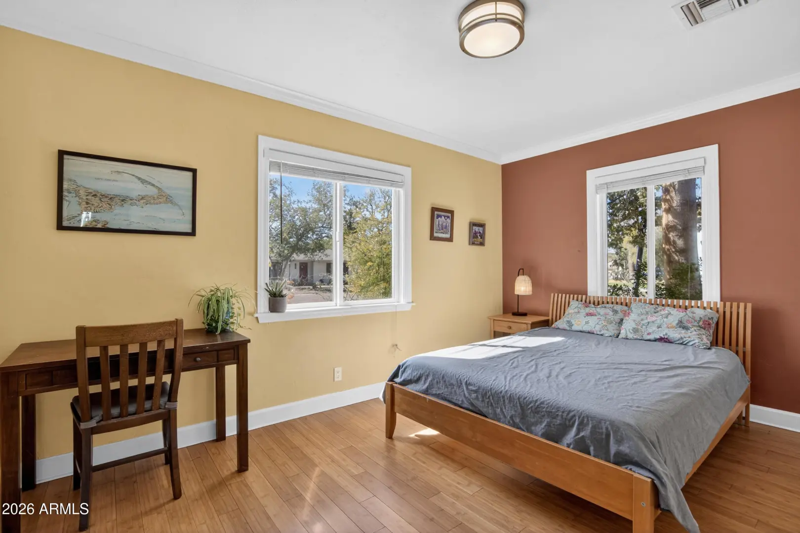 Nestled in the heart of Coronado, this beautifully restored historic home invites you to slow down, settle in, and enjoy the character of one of Phoenix's most beloved neighborhoods. From the moment you step inside, you're greeted by the warmth of original coffered ceilings, rich bamboo flooring, and the cozy charm of a wood-burning fireplace that makes the living space feel both timeless and welcoming.