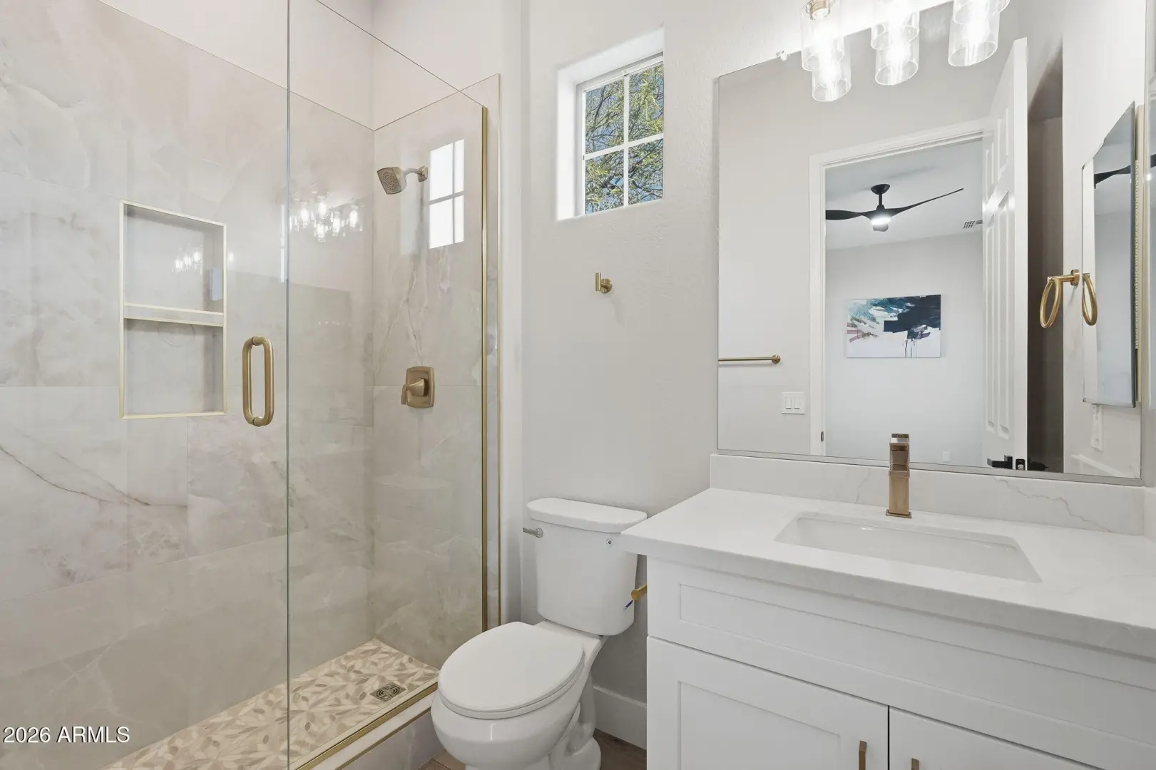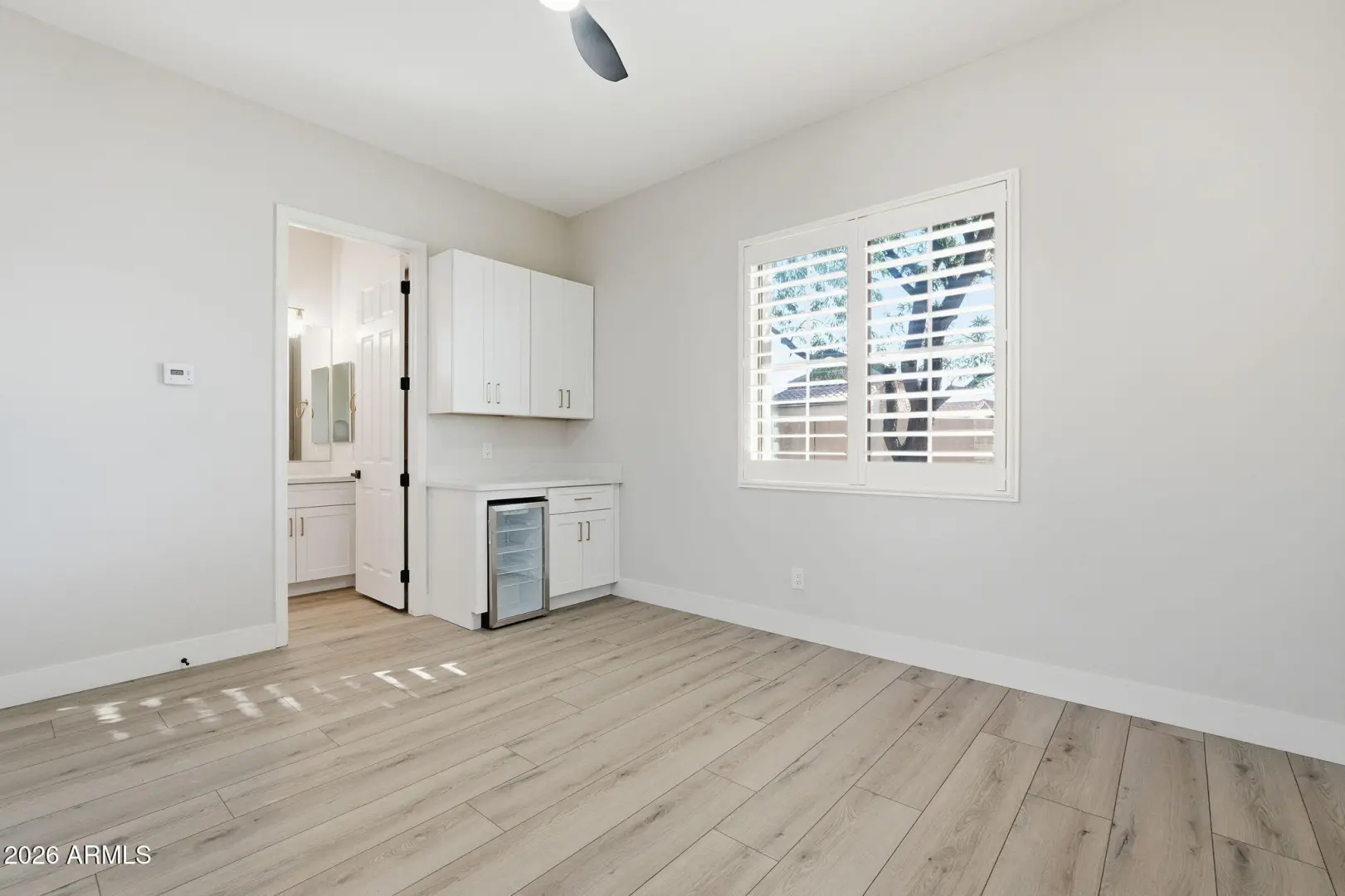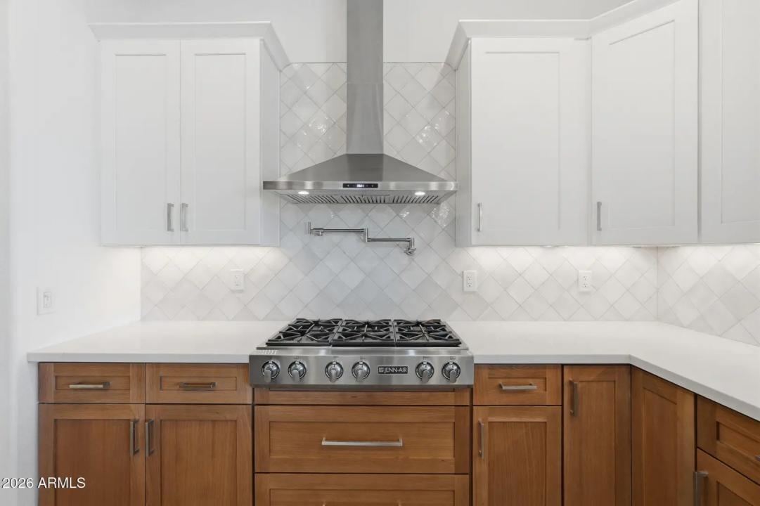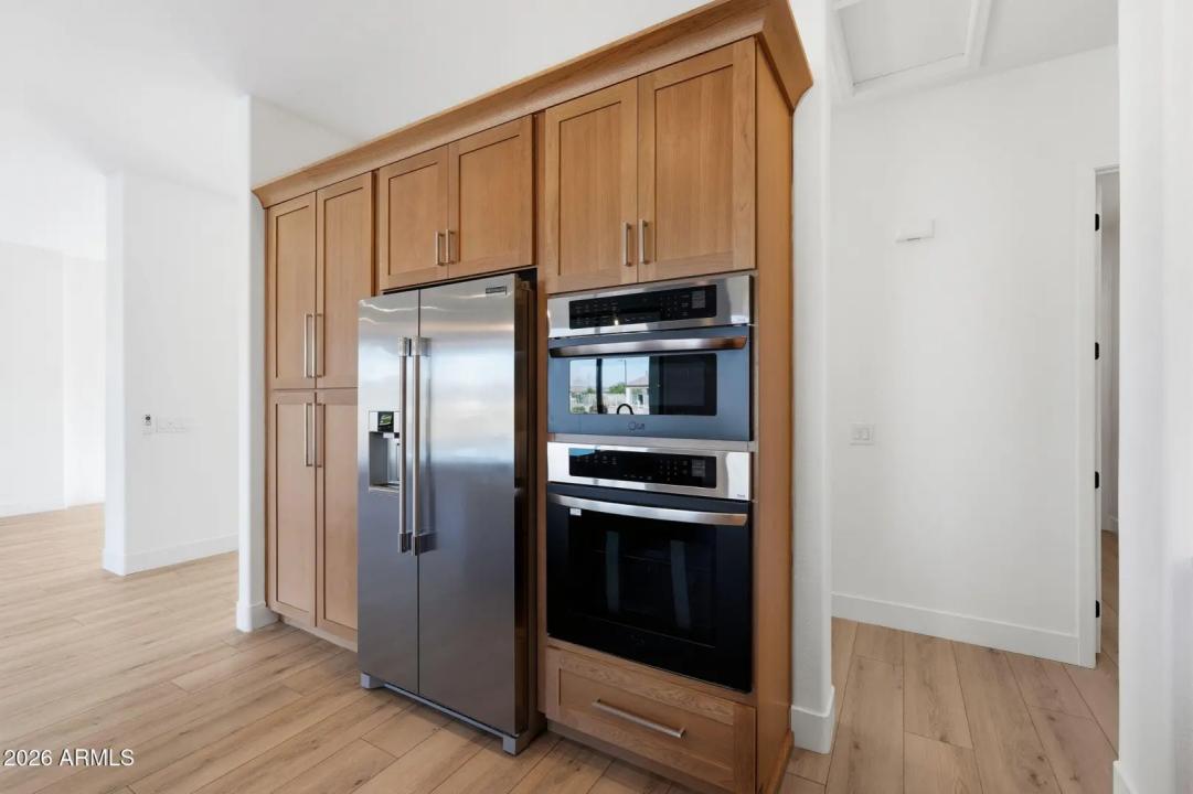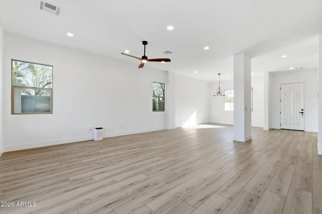 Stunning lakefront retreat in the heart of CantaMia at Estrella, Goodyear's premier guard-gated 55+ community! This exceptional Ballad floorplan commands one of the most coveted positions in the neighborhood, a waterfront lot with open space on a second side delivering unmatched privacy and breathtaking lake & mountain views. Thoughtfully transformed top to bottom in 2025 with a gorgeous new kitchen, designer bathrooms and fresh flooring throughout -- simply move in and enjoy. Private guest suite with separate entrance is ideal for visiting family. Owned solar with zero lease obligation means dramatically reduced utility costs from day one. Spacious great room opens to covered patio where Arizona sunsets over the lake become your daily backdrop. World-class community amenities include