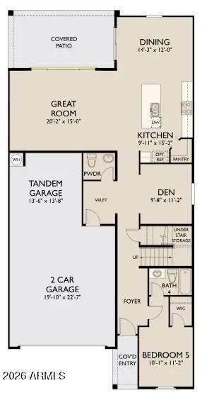 Brand new community in Surprise! This stunning two story home offers 3,270 sq ft of functional living space. It features 5 bedrooms, 4.5 bathrooms, den, loft, and a 3-car tandem garage. The open concept kitchen is perfect for entertaining, featuring a spacious island that flows into the dining area, a walk-in pantry, and stainless steel appliances. It also offers our Harmony Collection which includes white 42'' cabinets, biancone quartz kitchen countertops, white gloss tile kitchen backsplash, and 8x36 wood-look plank tile in all the common areas. The great room offers a 4-panel center sliding glass door so you can step out into your covered patio to enjoy indoor/outdoor living in your backyard with friends and family. The second floor includes 3 additional bedrooms, oversized Loft, and th