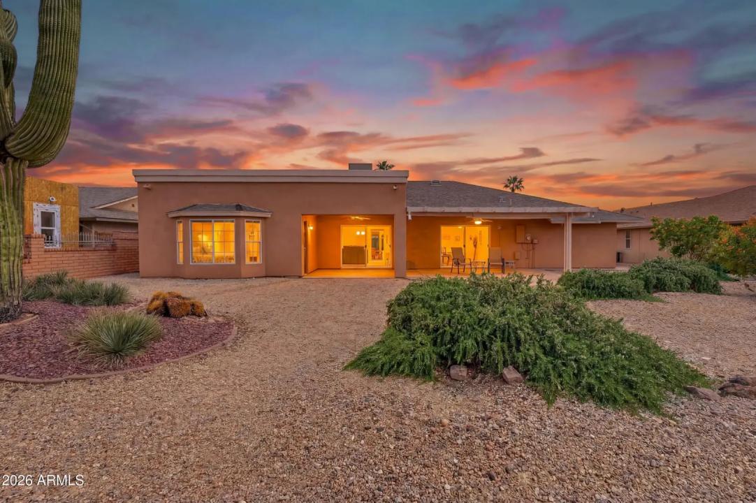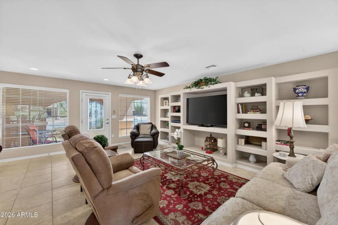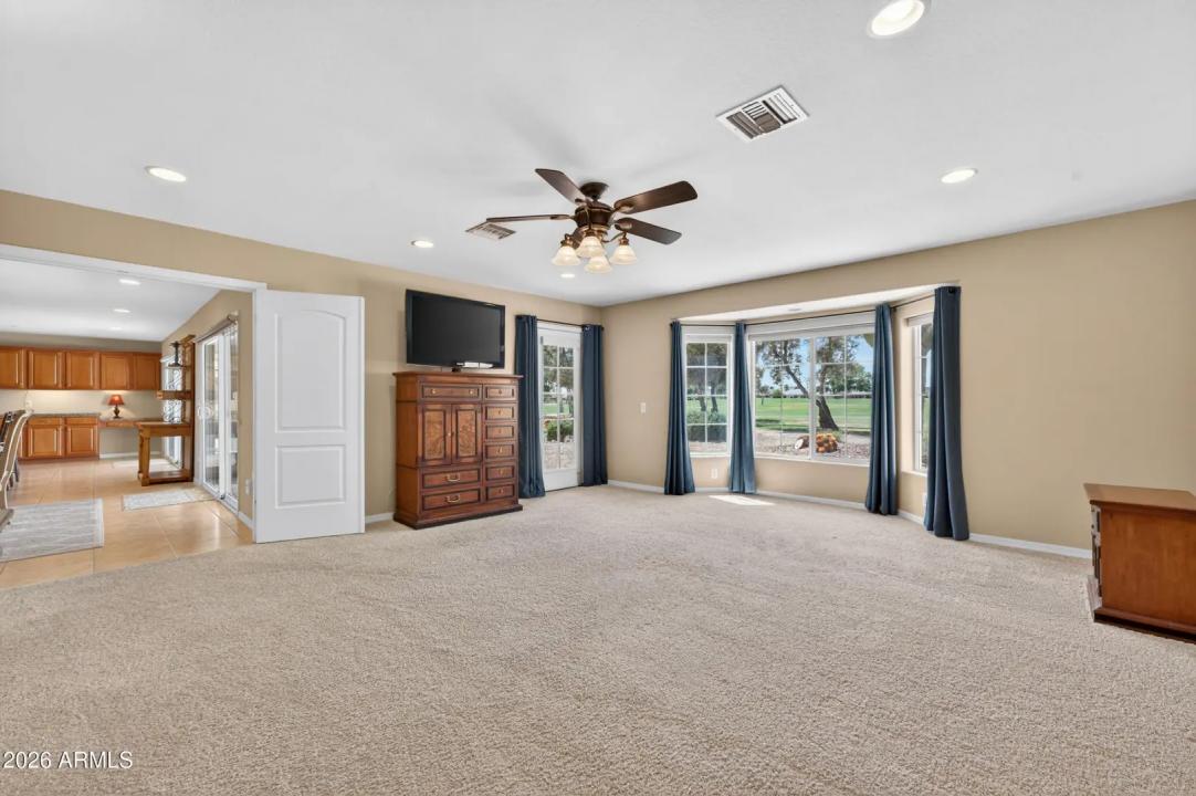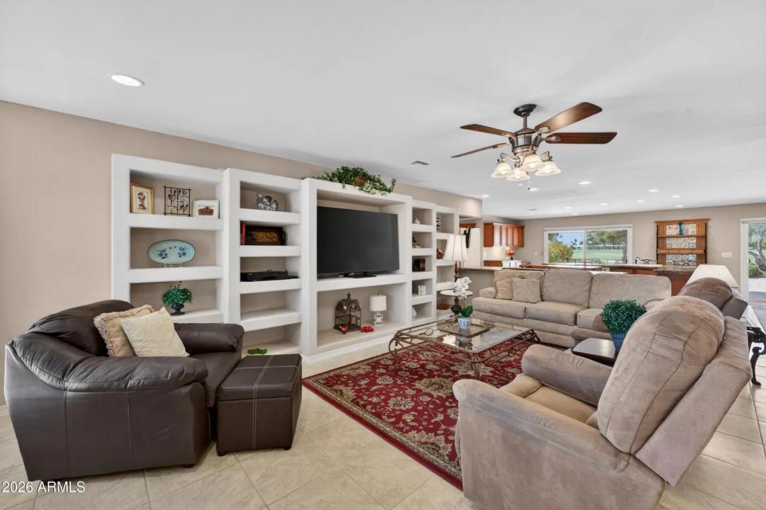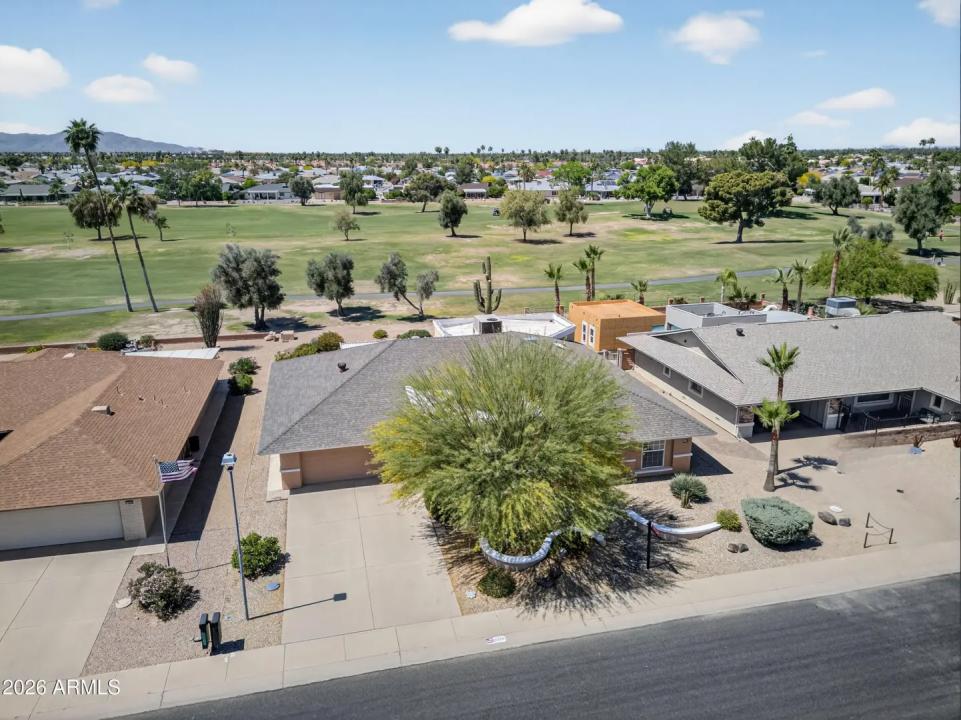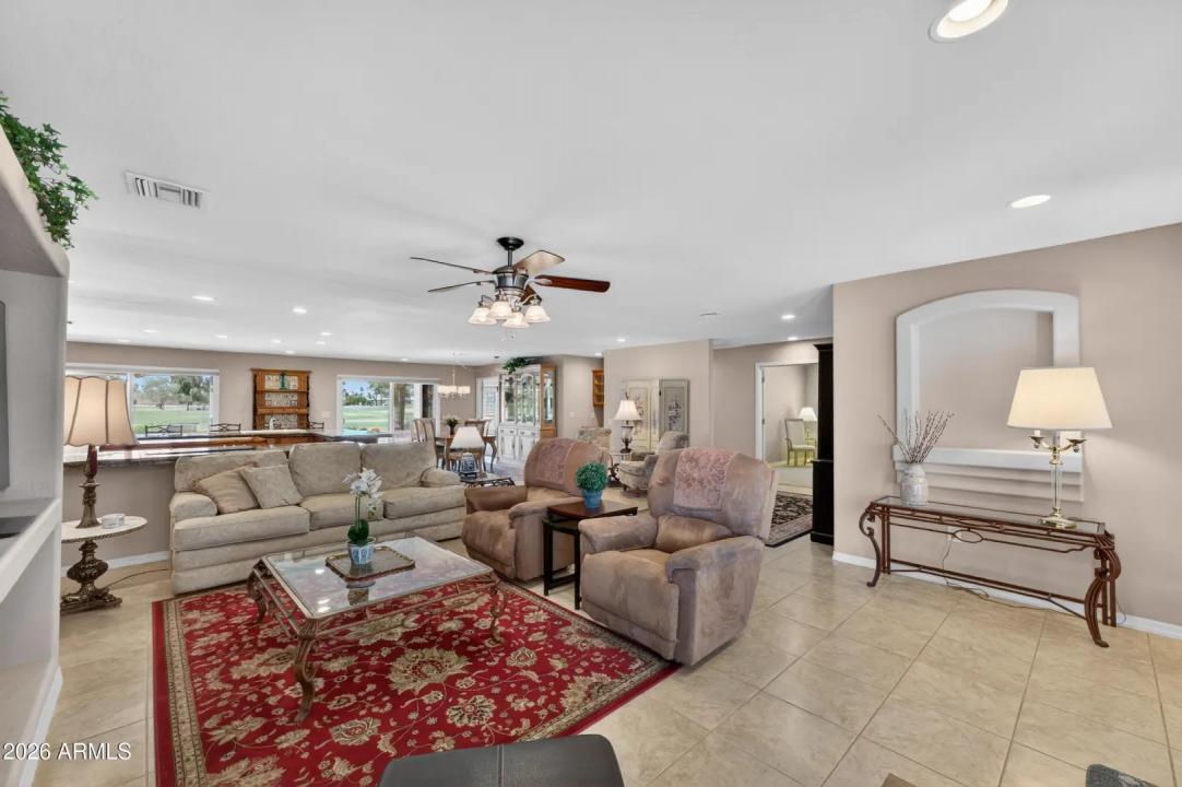 Custom model home on the 7th fairway with golf course views, stunning sunsets, and no HOA. This spacious Sun City West home features a very open floor plan with a large great room concept, ideal for both everyday living and entertaining. The split layout offers 2 primary suites with ensuites, separated by a versatile 3rd room that can serve as a bedroom, office, or den. An additional TV/den/craft room off the kitchen adds flexibility for hobbies, guests, or workspace. Large windows bring in natural light and frame the fairway views, while the custom design gives the home a distinctive feel. Lightly lived in by prior part-time owners and meticulously maintained over the years, with an extensive 2006 renovation. Rare golf course opportunity in a prime Sun City West location.