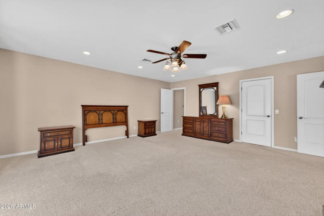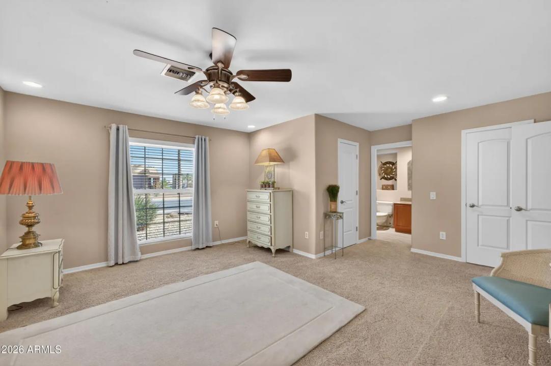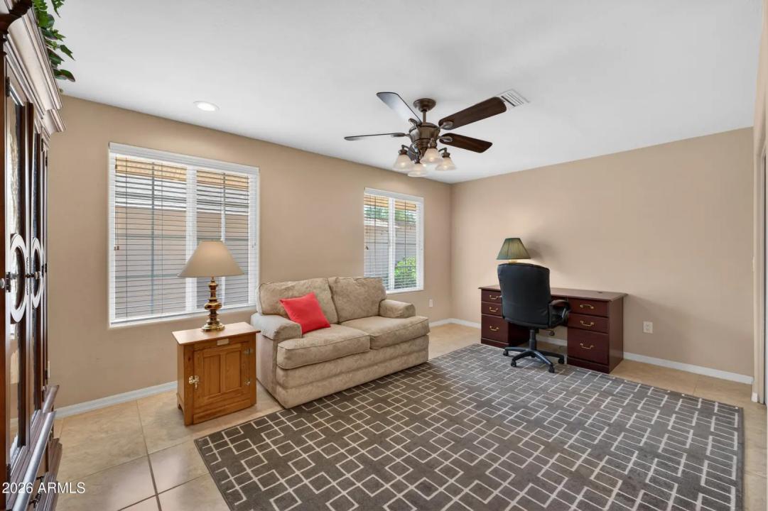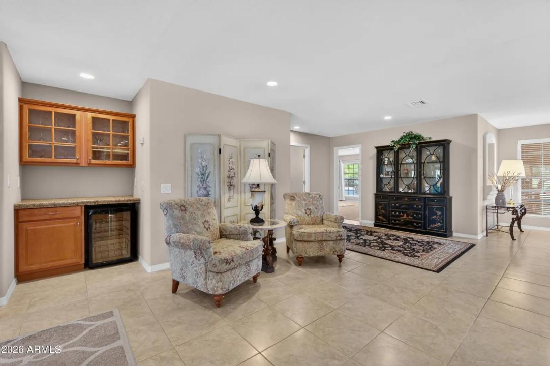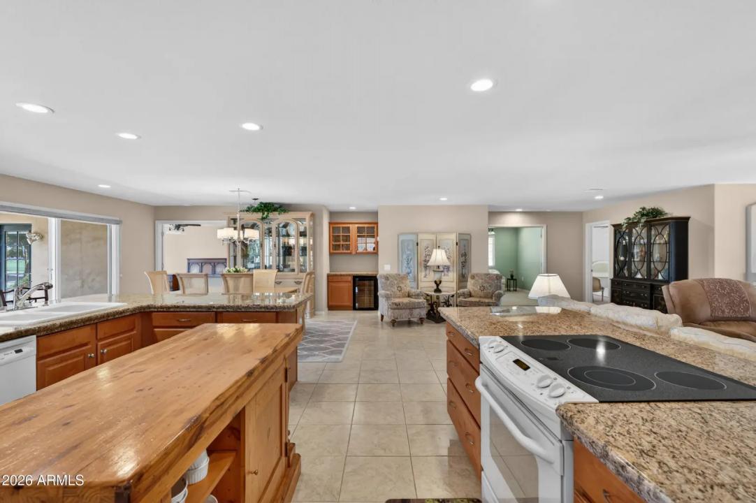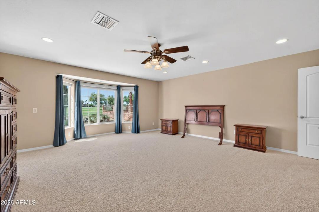 Custom model home on the 7th fairway with golf course views, stunning sunsets, and no HOA. This spacious Sun City West home features a very open floor plan with a large great room concept, ideal for both everyday living and entertaining. The split layout offers 2 primary suites with ensuites, separated by a versatile 3rd room that can serve as a bedroom, office, or den. An additional TV/den/craft room off the kitchen adds flexibility for hobbies, guests, or workspace. Large windows bring in natural light and frame the fairway views, while the custom design gives the home a distinctive feel. Lightly lived in by prior part-time owners and meticulously maintained over the years, with an extensive 2006 renovation. Rare golf course opportunity in a prime Sun City West location.