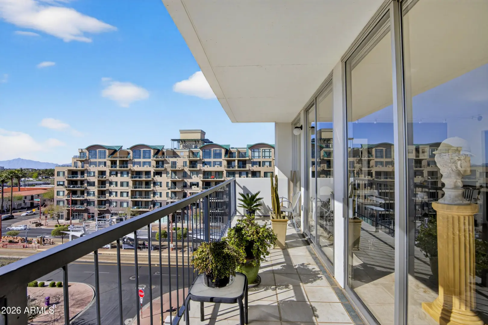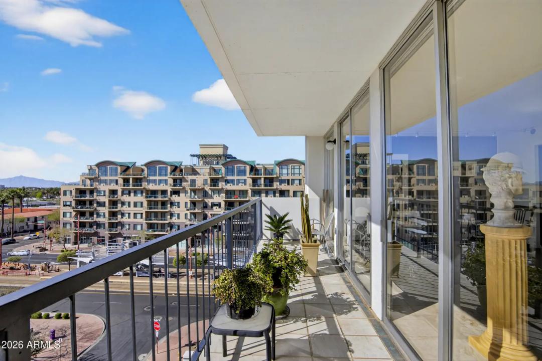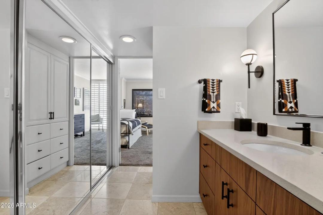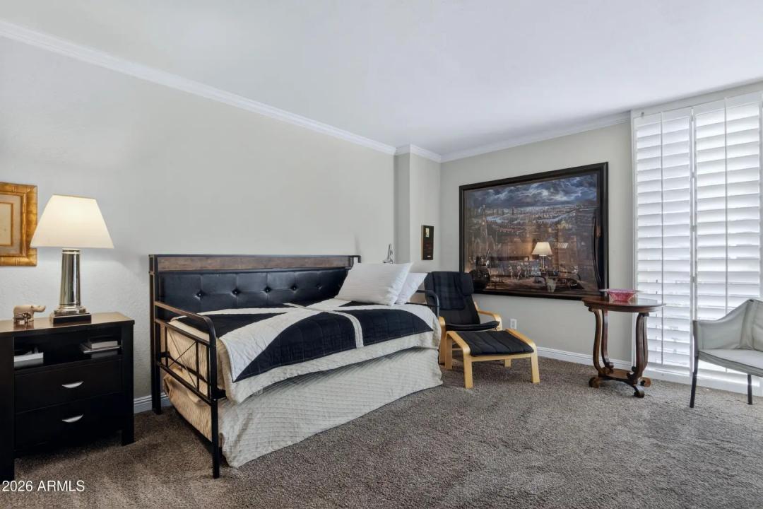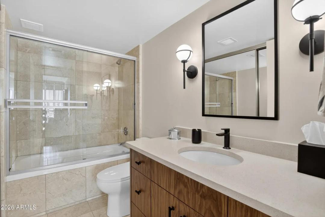 Wake up on the 6th floor to golden Arizona light pouring through floor-to-ceiling glass, with south-facing views overlooking the Heard Museum and the Phoenix skyline. This spectacular residence feels elevated, refined, and thoughtfully designed for both everyday comfort and unforgettable entertaining. The entry, kitchen, and dining areas have been completely renovated, creating stunning open-concept living. Custom walnut cabinetry and quartz counters anchor the design. The kitchen is as functional as it is beautiful. An inviting peninsula, perfect for prepping meals or enjoying breakfast, opens to the living area with stunning views. Sunshades, plantation shutters, and dual-pane insulated windows enhance privacy and energy efficiency.
