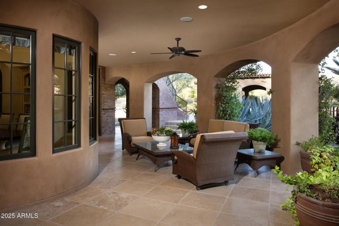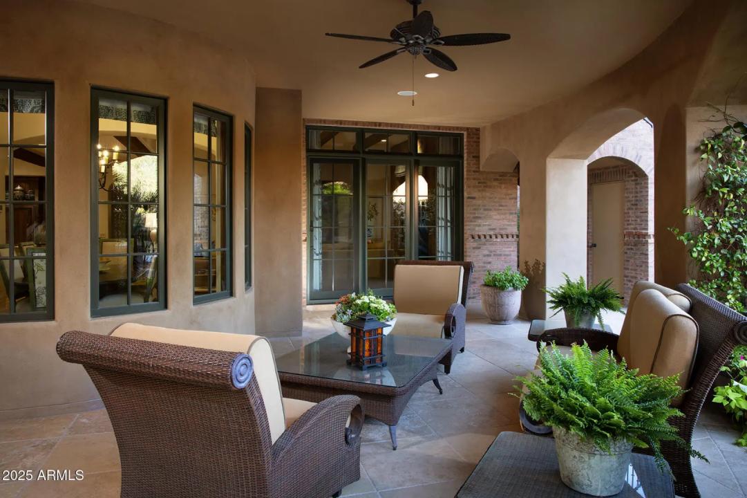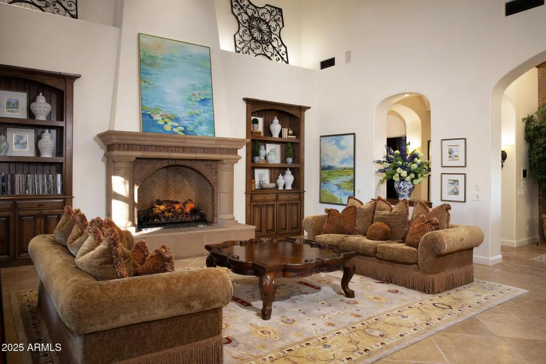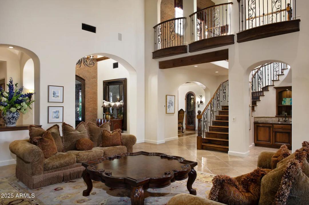 Situated in Prado, an exclusive gated community of 4+ acre private estates, rests this timeless Mediterranean masterpiece with mountain views. Built by Calvis Wyant, the estate features a 8,148/sf main house with 5 bedrooms plus a lavish 1,421/sf 2 bedroom guest house for a total of 9,711/sf of living space. The impeccable grounds include a pool and spa with a ramada, putting & 85 yd chipping green , large grass yard, pickle ball & basketball court that could be easily be converted to pickle ball courts. Car lovers will appreciate the 7 car garage with room for additional garages or RV storage. The homes lavish finishes and features include, formal living and dining room, family room, gourmet kitchen, breakfast room, office, theater, game room, primary suite with sitting room, spa like...
