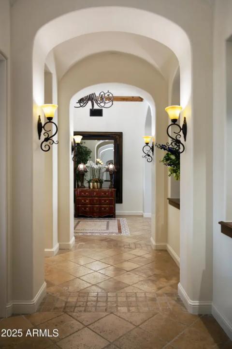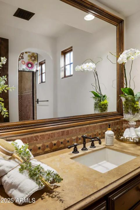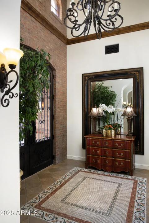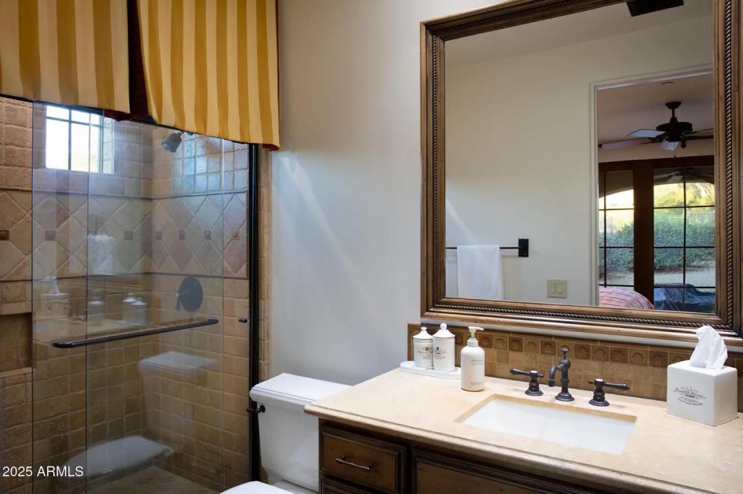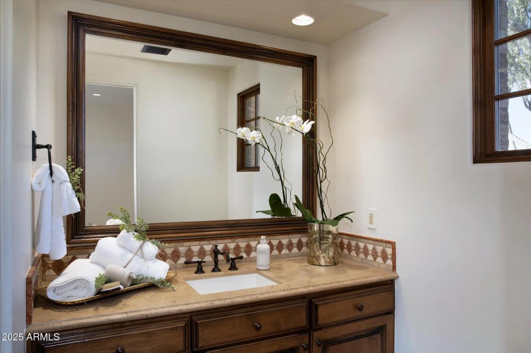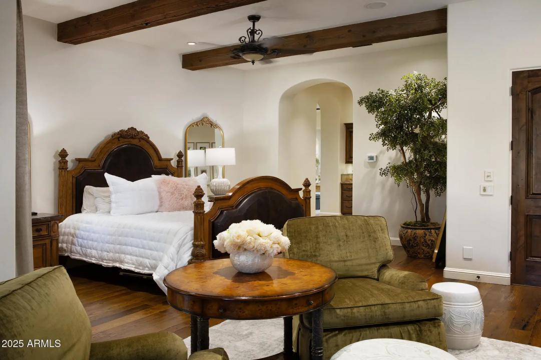 Situated in Prado, an exclusive gated community of 4+ acre private estates, rests this timeless Mediterranean masterpiece with mountain views. Built by Calvis Wyant, the estate features a 8,148/sf main house with 5 bedrooms plus a lavish 1,421/sf 2 bedroom guest house for a total of 9,711/sf of living space. The impeccable grounds include a pool and spa with a ramada, putting & 85 yd chipping green , large grass yard, pickle ball & basketball court that could be easily be converted to pickle ball courts. Car lovers will appreciate the 7 car garage with room for additional garages or RV storage. The homes lavish finishes and features include, formal living and dining room, family room, gourmet kitchen, breakfast room, office, theater, game room, primary suite with sitting room, spa like...