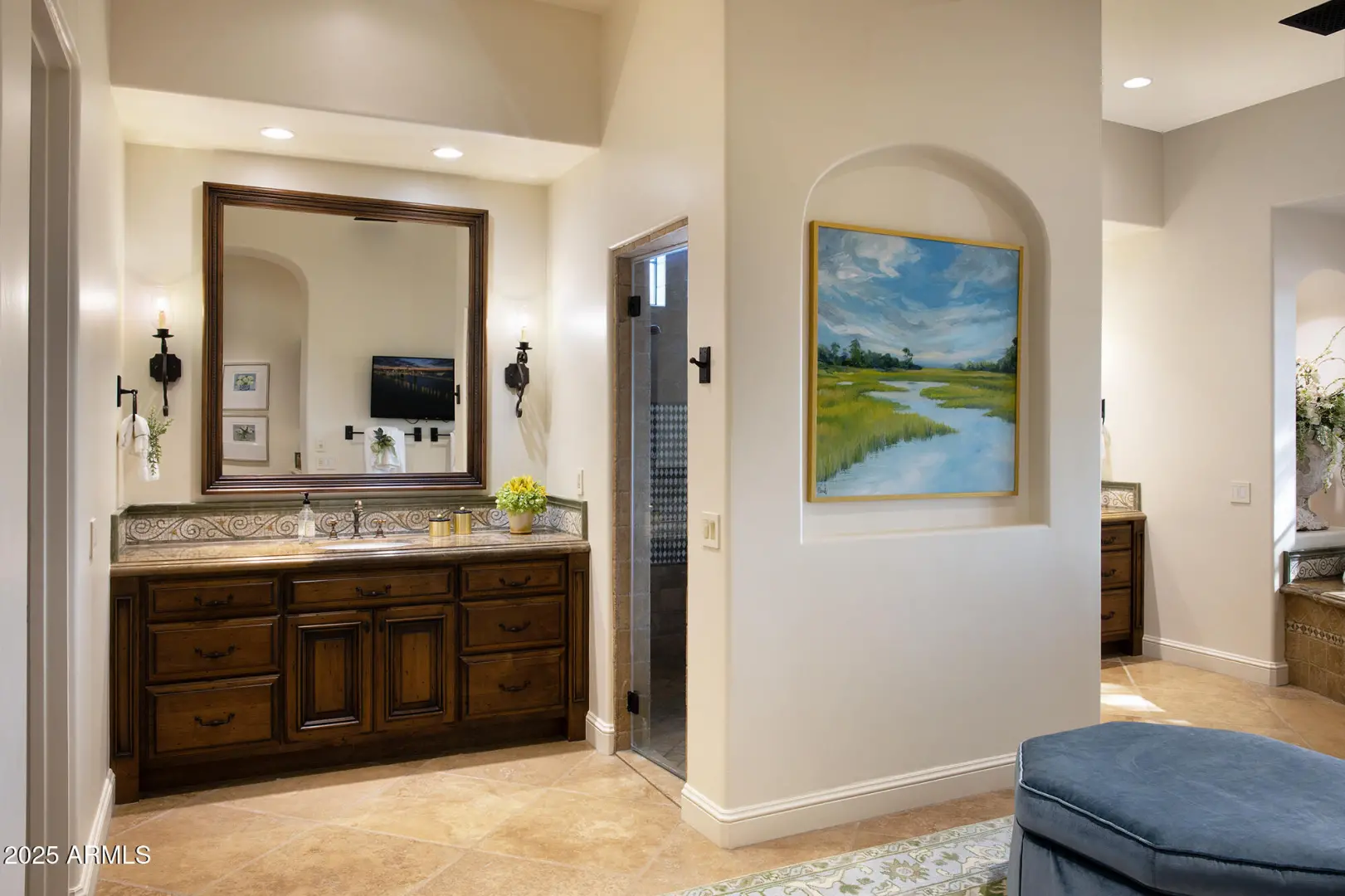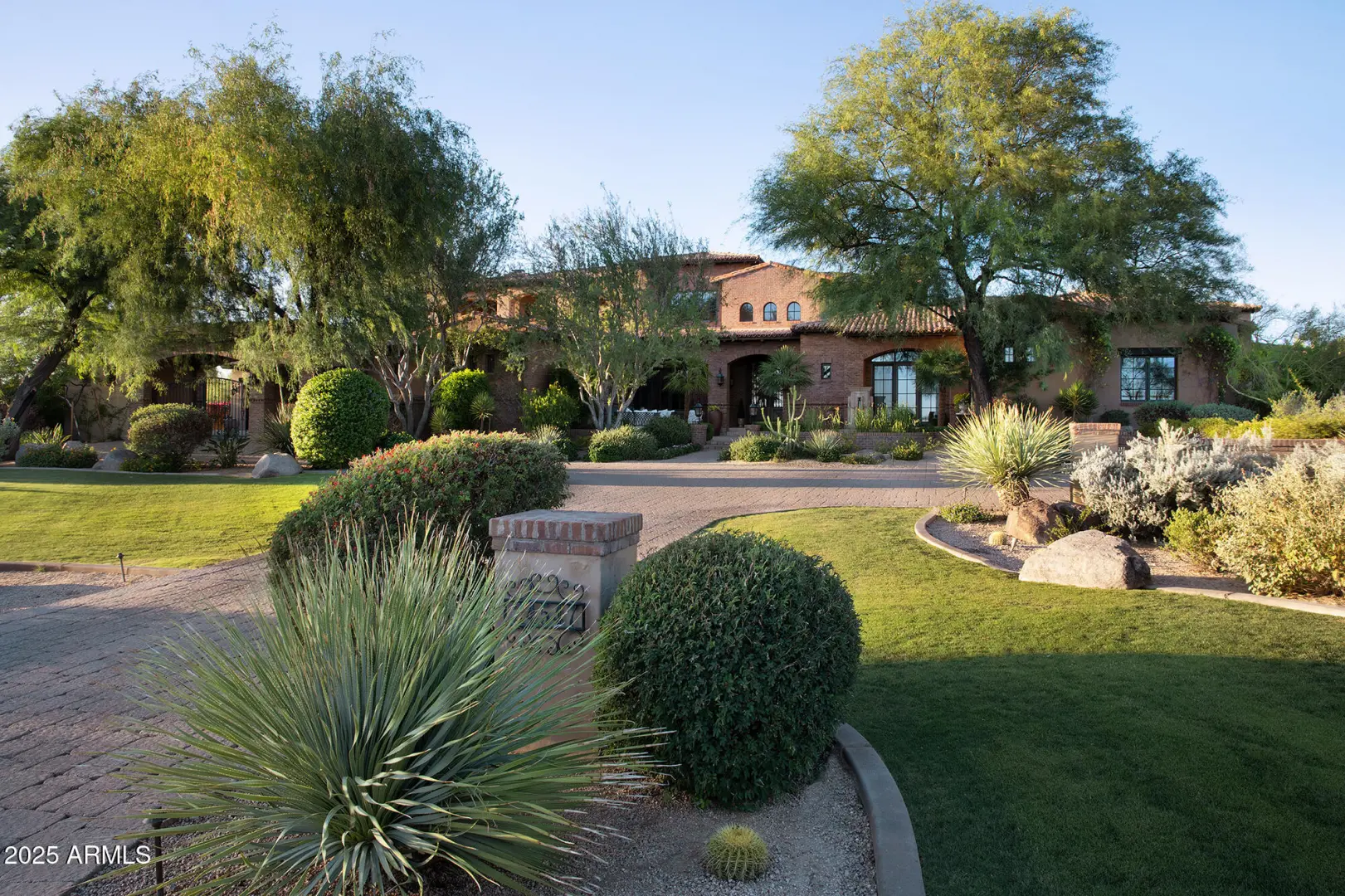 Situated in Prado, an exclusive gated community of 4+ acre private estates, rests this timeless Mediterranean masterpiece with mountain views. Built by Calvis Wyant, the estate features a 8,148/sf main house with 5 bedrooms plus a lavish 1,421/sf 2 bedroom guest house for a total of 9,711/sf of living space. The impeccable grounds include a pool and spa with a ramada, putting & 85 yd chipping green , large grass yard, pickle ball & basketball court that could be easily be converted to pickle ball courts. Car lovers will appreciate the 7 car garage with room for additional garages or RV storage. The homes lavish finishes and features include, formal living and dining room, family room, gourmet kitchen, breakfast room, office, theater, game room, primary suite with sitting room, spa like...