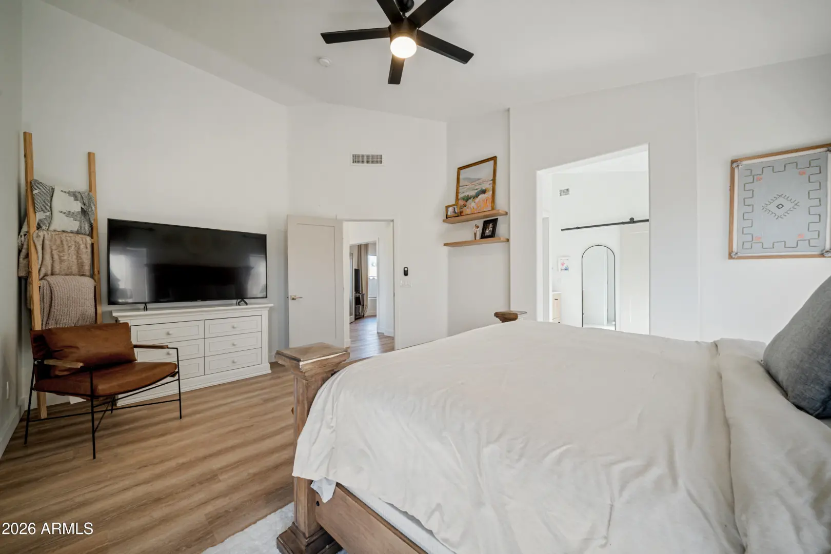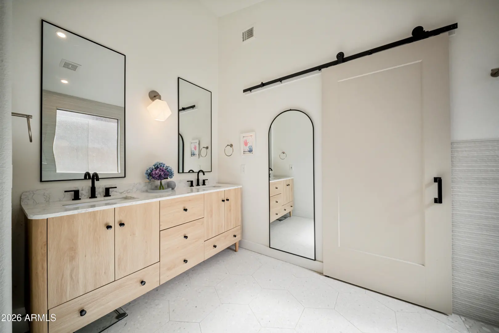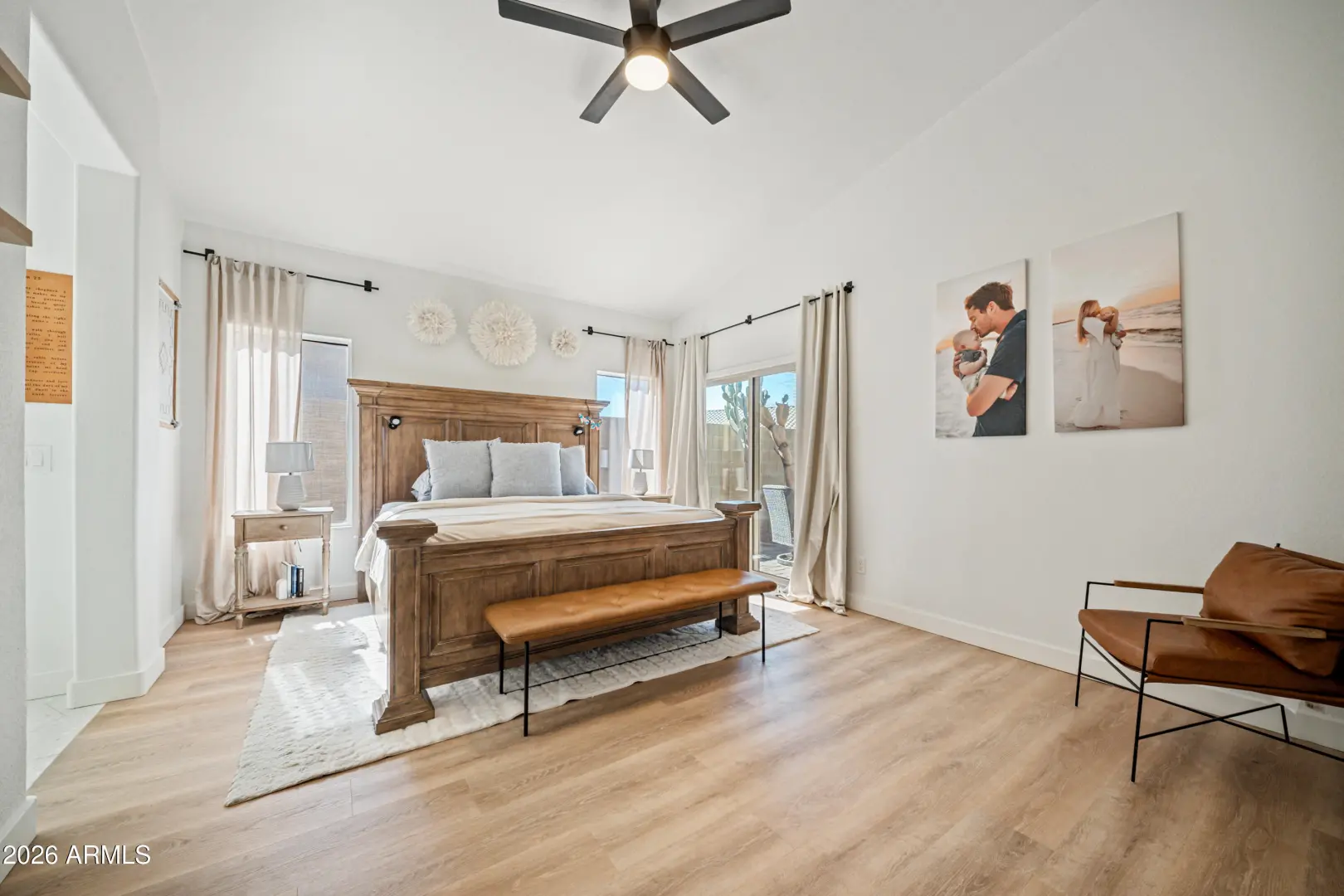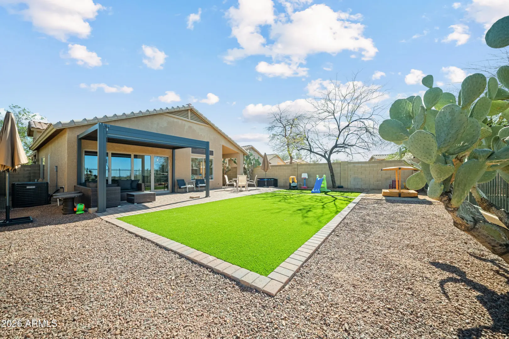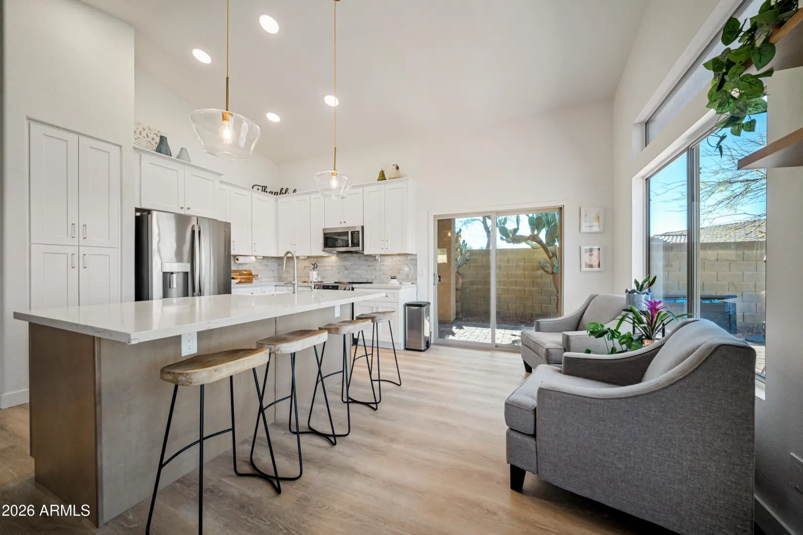 Fully remodeled home on the best view lot in Anthem! New roof and new 4-ton Goodman A/C offer lasting peace of mind. The open-concept layout showcases luxury vinyl plank flooring, upgraded interior doors, adjustable recessed lighting, and a dramatic 4-panel folding slider that creates seamless indoor-outdoor living. The designer kitchen features quartz countertops, two-tone soft-close cabinetry, GE stainless appliances, farmhouse sink, under-cabinet lighting, and a 4-seat island with statement pendants. The split floor plan includes a spa-inspired primary suite with terrazzo floors, dual oak vanity, and floor-to-ceiling tiled shower. Enjoy a wrap-around paver patio, pergola, synthetic turf, drip irrigation, and epoxy-coated garage with storage. Turnkey and beautifully upgraded .