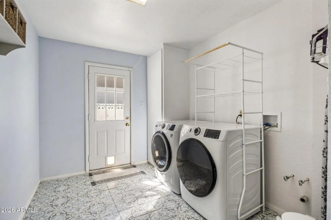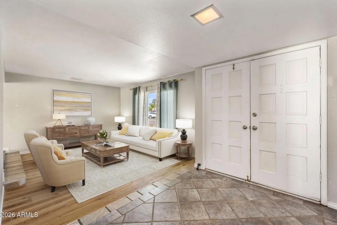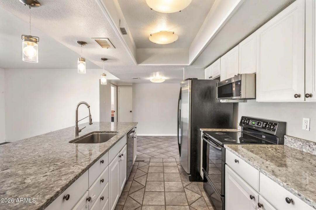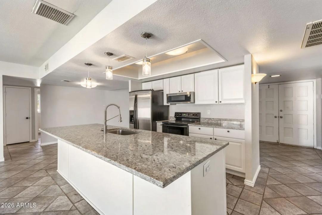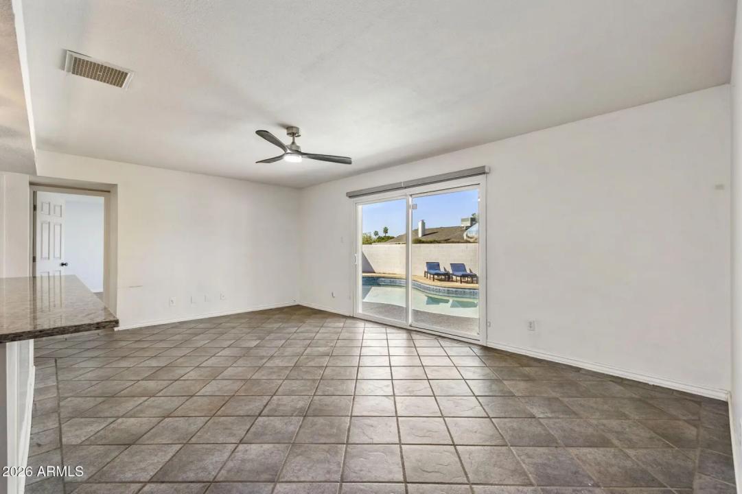 Prime Tempe location! Major updates already completed including roof, AC, water heater, & Pella windows/sliding doors. Situated on a quiet cul-de-sac with a charming white picket fenced front yard & sparkling pool. The split floor plan features a sunken living room, open kitchen with island, granite countertops, pendant lighting, farmhouse sink, stainless appliances + fridge, & an oversized family room. Large laundry/mud room with washer, dryer, storage, & side exit. Expanded primary bath offers barn doors, dual sinks, large tiled shower, & backyard access. Private yard includes a large covered patio, pergola, & citrus trees. Enjoy a pebble tech diving pool & side play yard with grass. Conveniently located to US-60, minutes to Sky Harbor Airport & Kiwanis Park.
