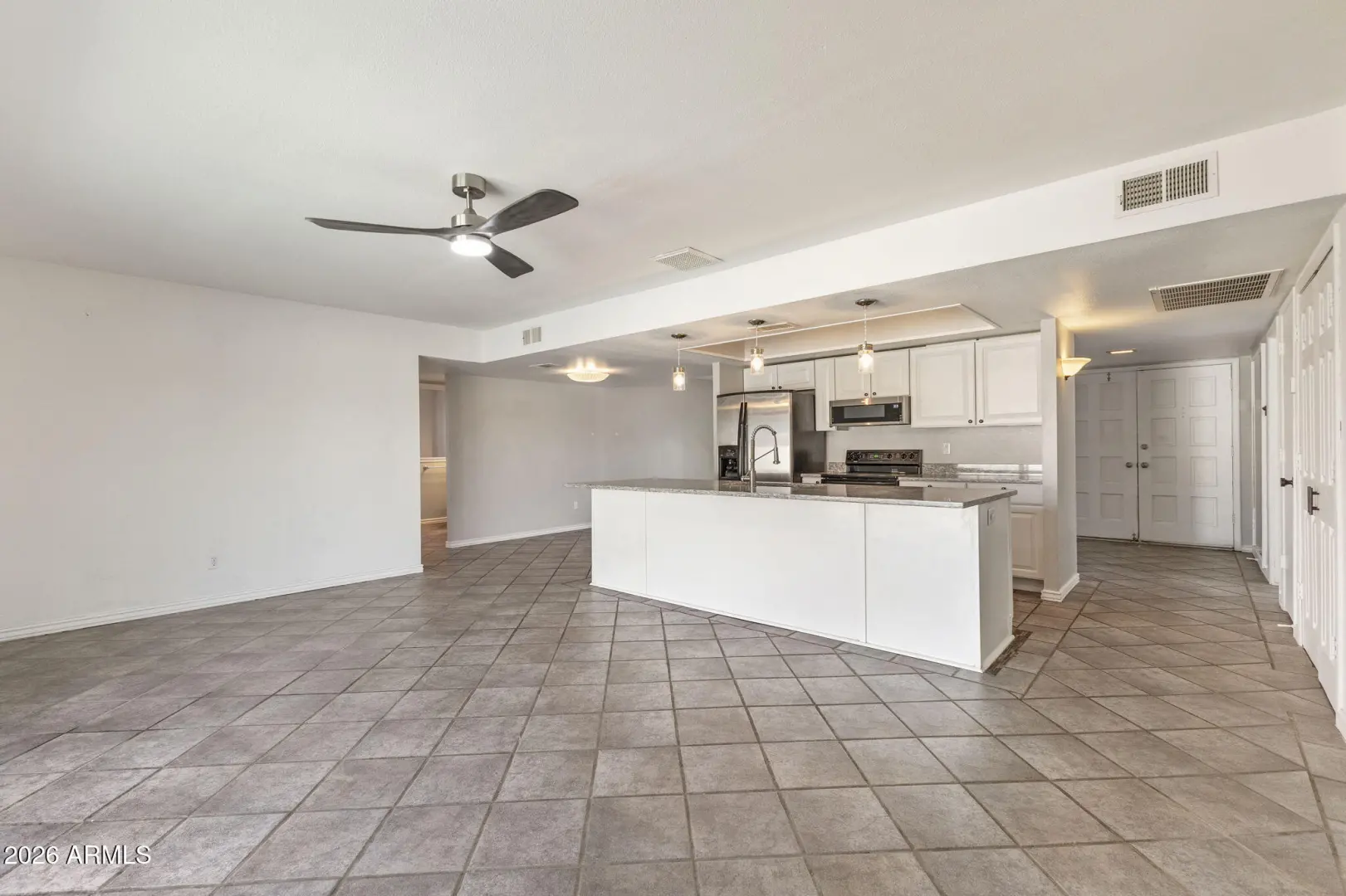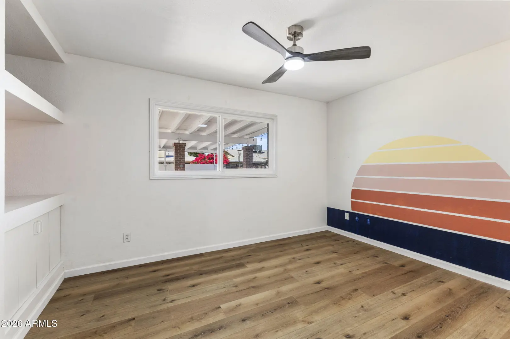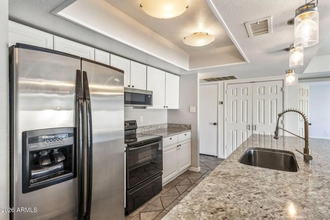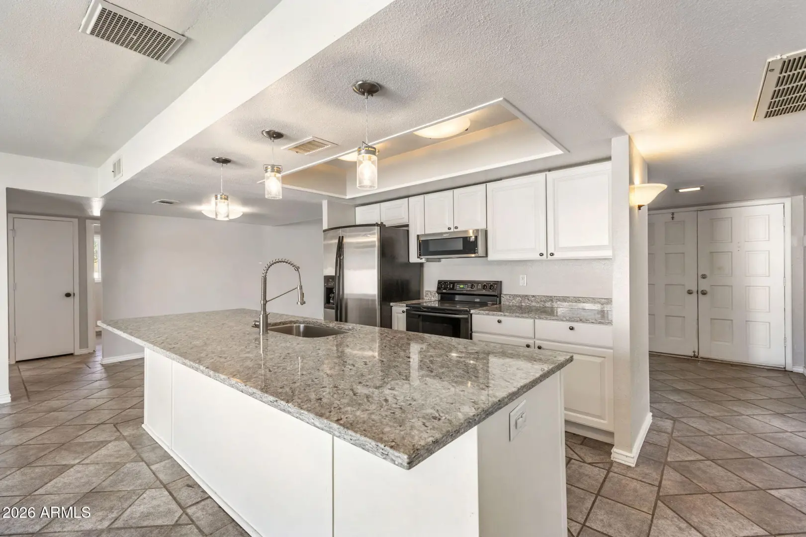 Prime Tempe location! Major updates already completed including roof, AC, water heater, & Pella windows/sliding doors. Situated on a quiet cul-de-sac with a charming white picket fenced front yard & sparkling pool. The split floor plan features a sunken living room, open kitchen with island, granite countertops, pendant lighting, farmhouse sink, stainless appliances + fridge, & an oversized family room. Large laundry/mud room with washer, dryer, storage, & side exit. Expanded primary bath offers barn doors, dual sinks, large tiled shower, & backyard access. Private yard includes a large covered patio, pergola, & citrus trees. Enjoy a pebble tech diving pool & side play yard with grass. Conveniently located to US-60, minutes to Sky Harbor Airport & Kiwanis Park.