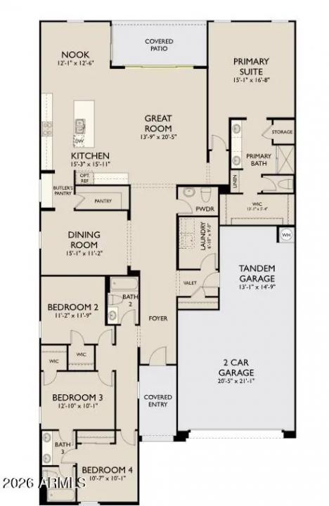 This brand-new construction showcases our Farmhouse exterior architecture. This open concept kitchen is perfect for entertaining friends and family with White Shaker 42'' Upper Cabinets to included Gun Metal l cabinet hardware, spacious island with Biancone Quartz countertops, Baker Blvd. picket white white vertical backsplash, a stainless steel gas range, and a convenient butler's pantry. The Jade offers 2623 sq feet of living space and features 4 bedrooms, 3.5 bathrooms, and a 3-car tandem Garage with plenty of storage throughout and a double gate. Escape to your own oasis in the separate primary suite, where getting ready is a breeze with dual sinks, walk-in closet and a generously sized bedroom. Thanks to the open concept layout, with Windsor Honey 8 x 36 Plank tile, 9'' ceilings, Lar