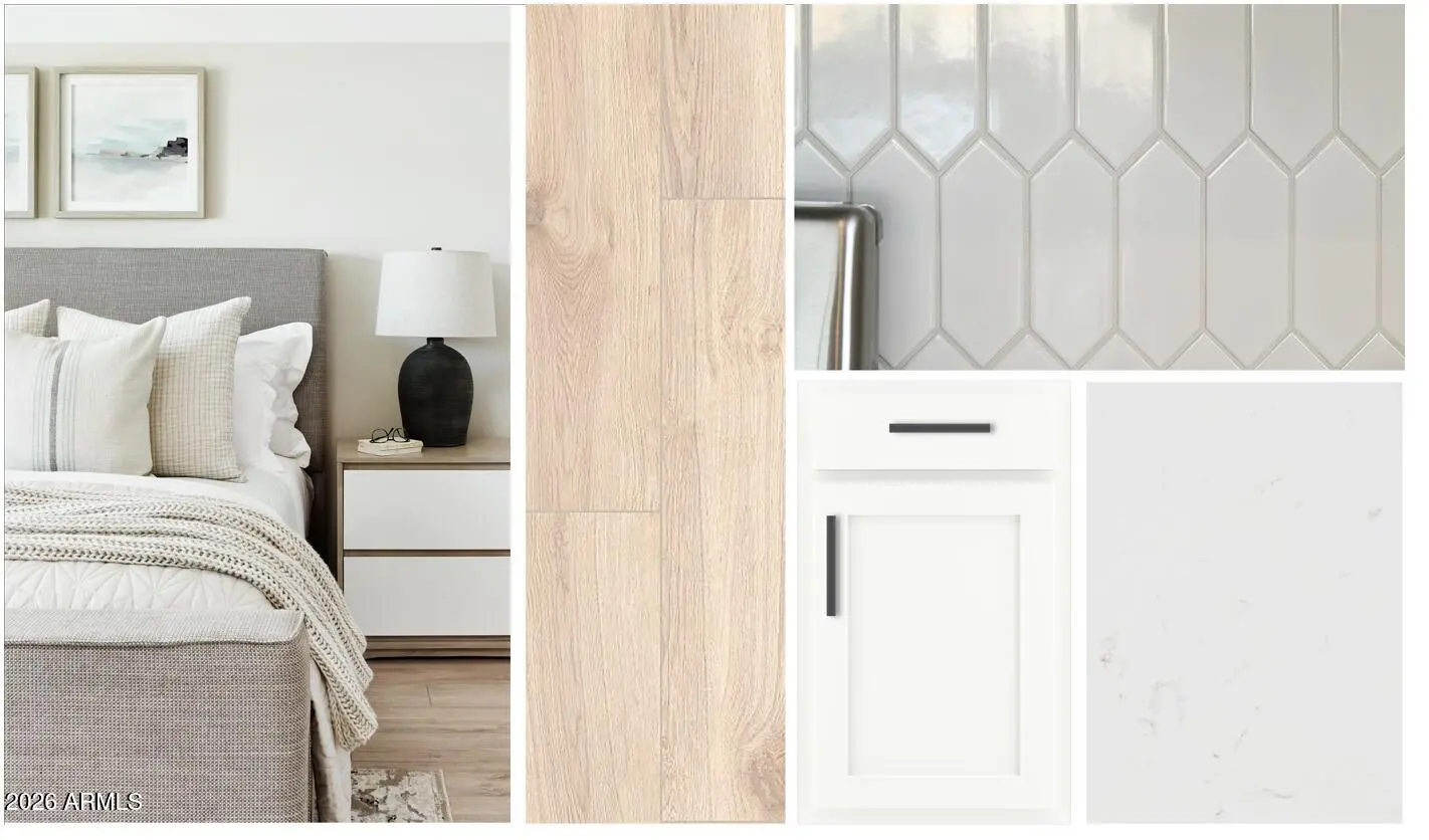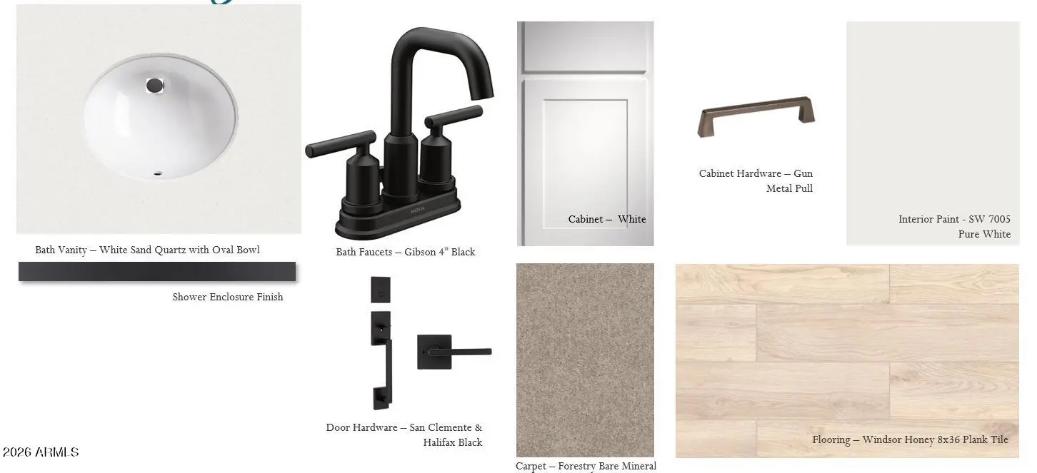 Welcome home to this beautiful four-bedroom, den, three-bath residence offering 2,071 square feet of thoughtfully designed living space. With its inviting modern exterior and stylish Harmony collection, this home effortlessly blends rustic charm with modern sophistication. Step inside to a bright, open layout featuring Biancone quartz countertops, a Baker Blvd Picket white backsplash, and pendant light pre-wires above the spacious kitchen island -- the perfect setting for casual breakfasts or evening gatherings. The bathrooms showcase White Sand quartz for a clean, elegant touch, complemented by black faucets and hardware that add a hint of contemporary flair. Throughout the main living areas, 8 x 36 Windsor Honey tile flooring offers a warm, cohesive flow, while the bedrooms feature