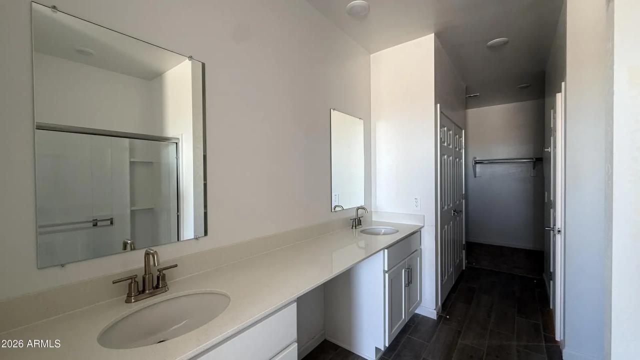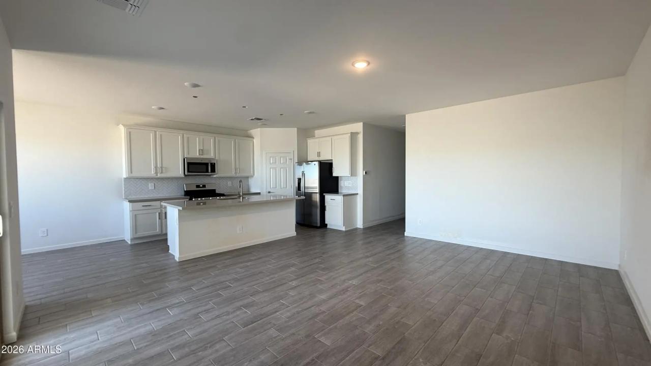 Iris at Alba - Amarillo Creek in Maricopa featuring a Spanish elevation. This 1,797 sq ft home offers 4 beds, 2 baths, and a large backyard The open-concept layout features a dining nook and great room. The kitchen showcases the Timeless Collection finishes including white 42'' upper cabinets, Ivory White Quartz countertops, Backsplash, and Hardware. Flooring includes [Flooring main] with Flooring bedrooms. The primary suite features [Primary Suite Features]. Additional highlights include Garage, Laundry, and Upgrades.