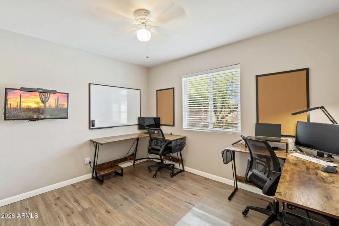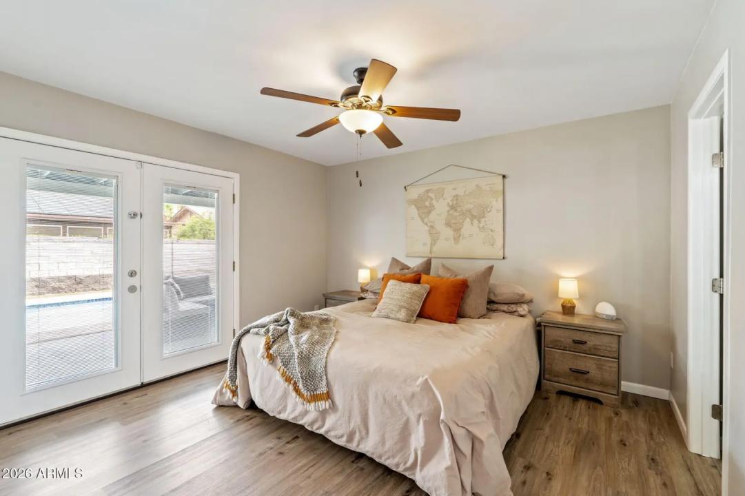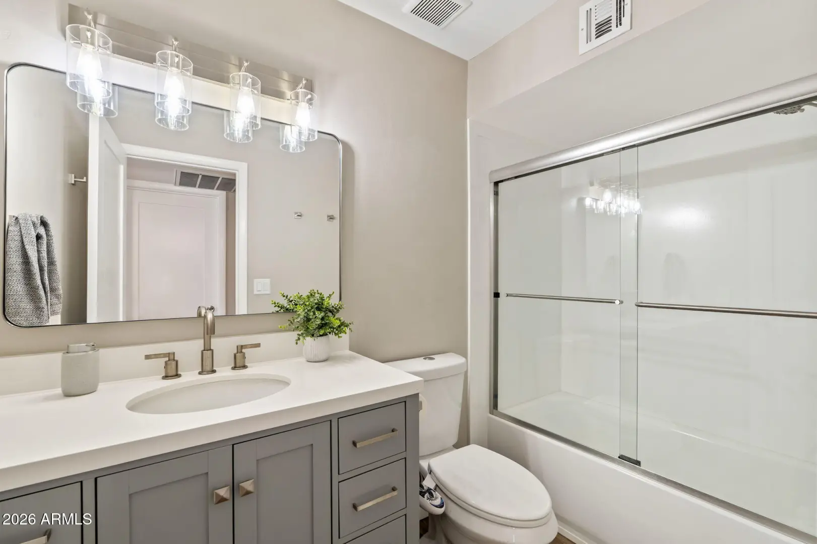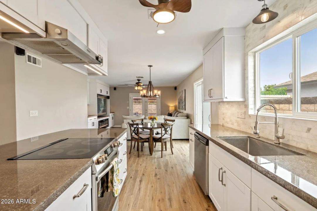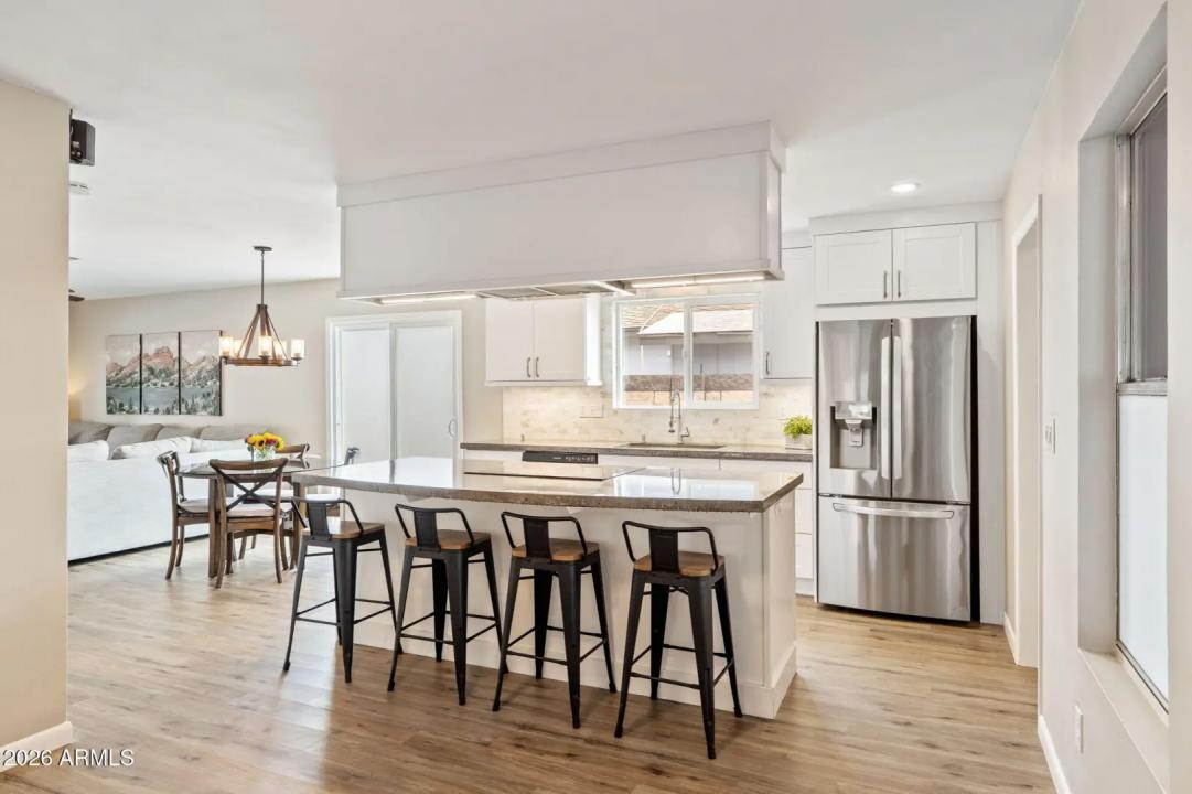 Step through a private courtyard into this beautifully updated, move-in ready 4-bedroom, 2-bath home with a 2-car garage, thoughtfully improved throughout to blend modern updates with everyday livability. The open layout is filled with natural light and features all-new luxury vinyl plank flooring, updated fixtures and finishes throughout, and an electric fireplace in the living room for added warmth and ambiance. The upgraded kitchen showcases shaker cabinetry, concrete epoxy countertops, and a spacious walk-in pantry. The oversized primary suite offers a relaxing retreat with an electric fireplace, dual closets, and a fully updated ensuite bath, while the guest bathroom features stylish, contemporary finishes.