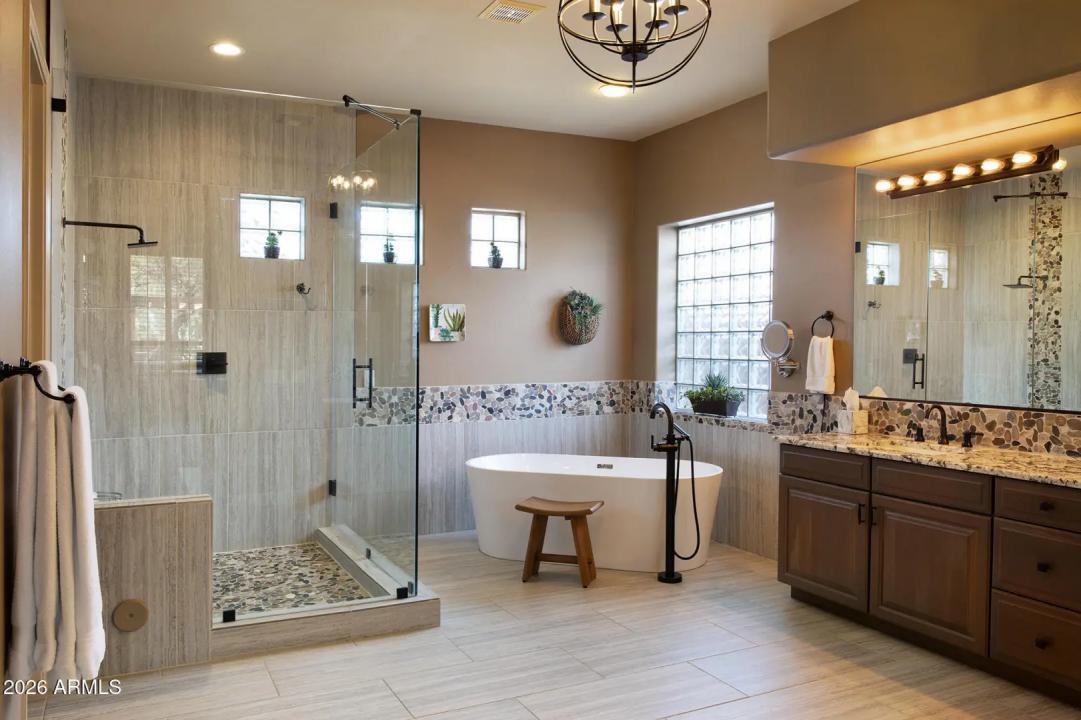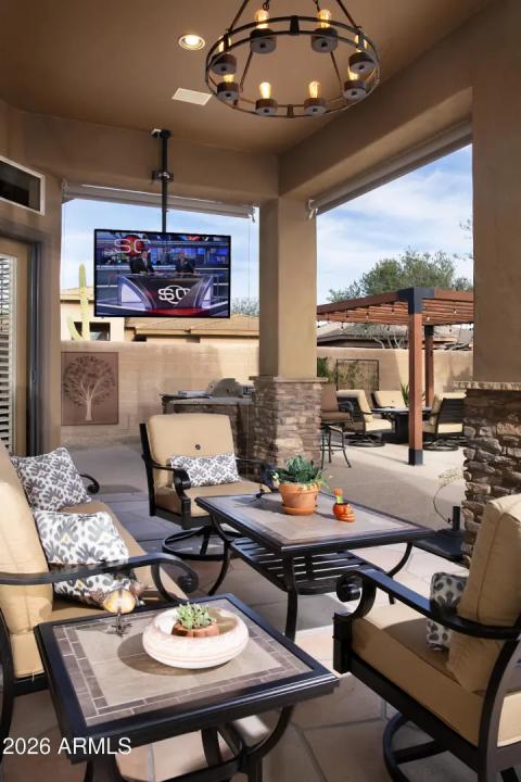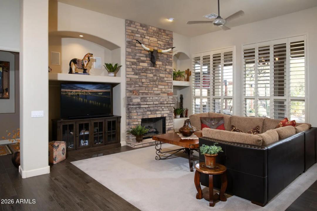 Beautiful home in guard gated Raptor Retreat of Grayhawk. The home, that was upgraded in 2020, features a hugely upgraded resort style backyard great for outdoor entertainment. The kitchen is a chef's dream and master bath is a showpiece. The corner lot backs to a natural wash so separating it from neighbors on 3 sides for great privacy. Recent updates include new roof, HVAC, pool heater, gas stove, plantation shutters, sonos music system, patio sunshades, epoxy garage floor and more. This home is ready to move into.
